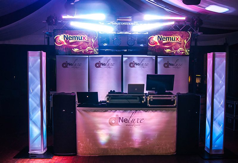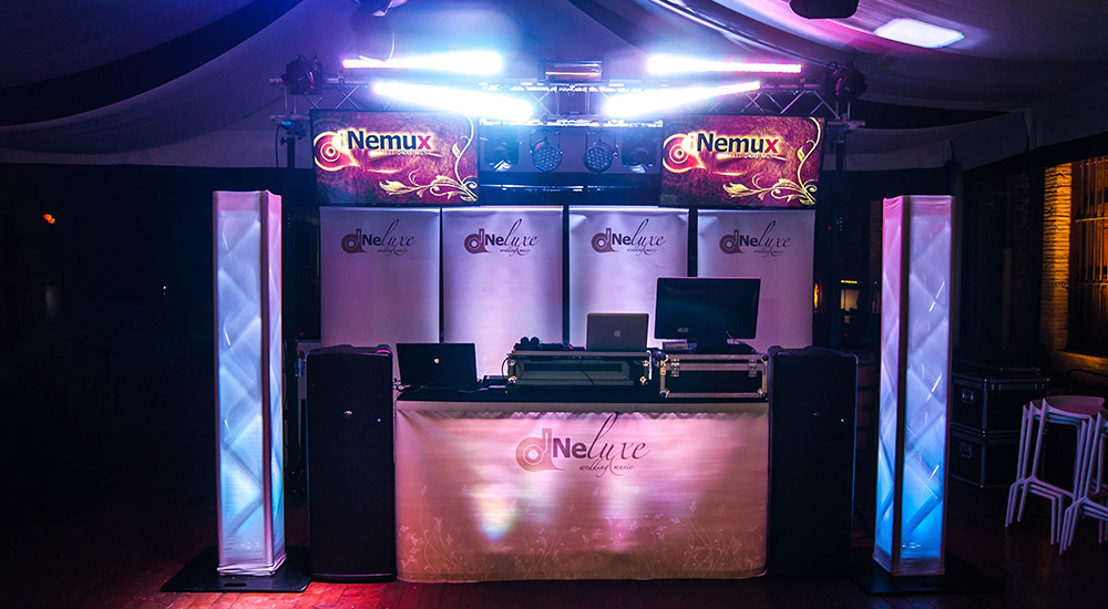 En Nemux, realizamos el montaje del equipo principal dentro de la carpa para la amenización del baile y de la animación de la totalidad de la fiesta. Usualmente, dependiendo de los requerimientos del evento y siempre que se necesite ambientación musical en la zona del comedor, se instala un equipo de reproducción conectado al equipamiento de sonido del propio local, uniformemente distribuido por toda la sala de banquetes.