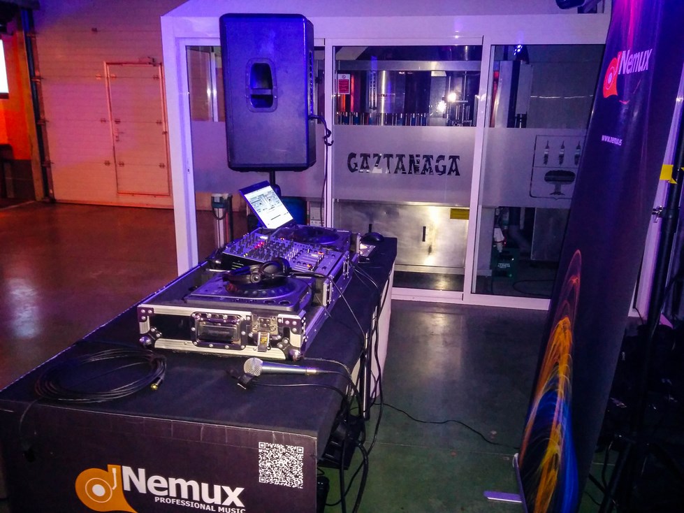 En la Sidrería Gaztañaga, Nemux realiza el montaje del equipo principal dentro de la parte de las barricas para la posterior animación de la fiesta.